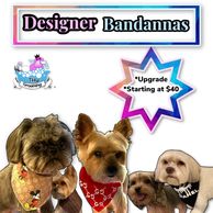 Upgrade to a designer bandana with a Full Groom, Mini Groom and Full Bath. Also included with the Lavish Dog Spa Day. Starting at $40